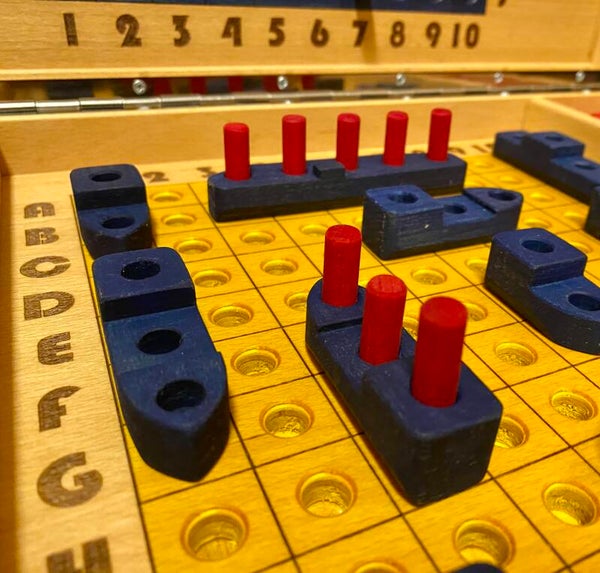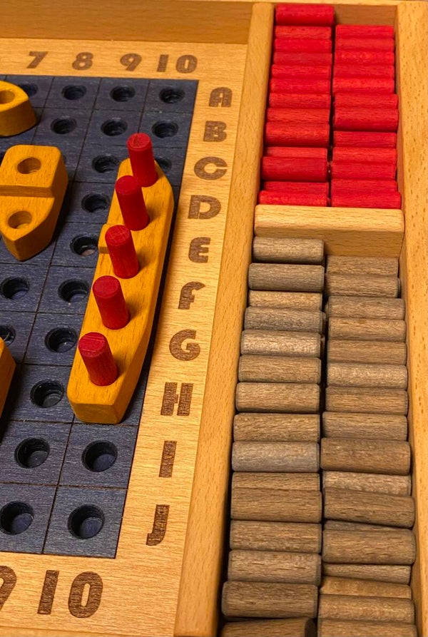 Das Spiel basiert auf dem bekannten Prinzip „Schiffe versenken“, wurde aber als hochwertige Holzversion neu umgesetzt. Die Spielfelder sind klappbar, alle Spielsteine und Schiffe bestehen ebenfalls aus Holz.